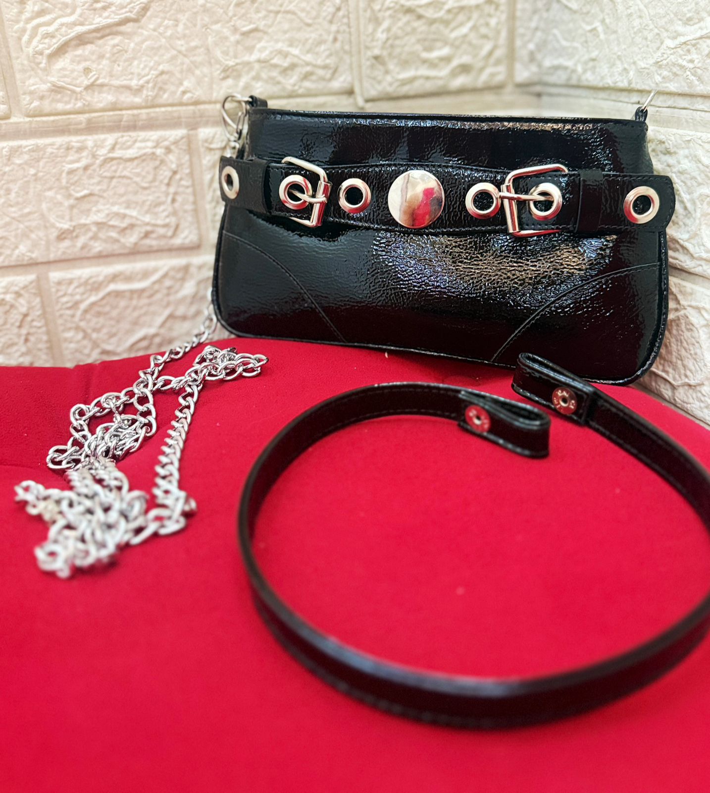 Bolsa preta com detalhe de cinto